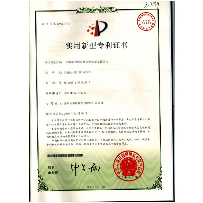 08一種圓盤針織機(jī)械探測油量安裝結(jié)構(gòu)