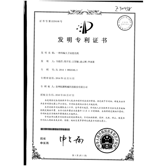 08發(fā)明-一種緯編大衛(wèi)衣提花機(jī)