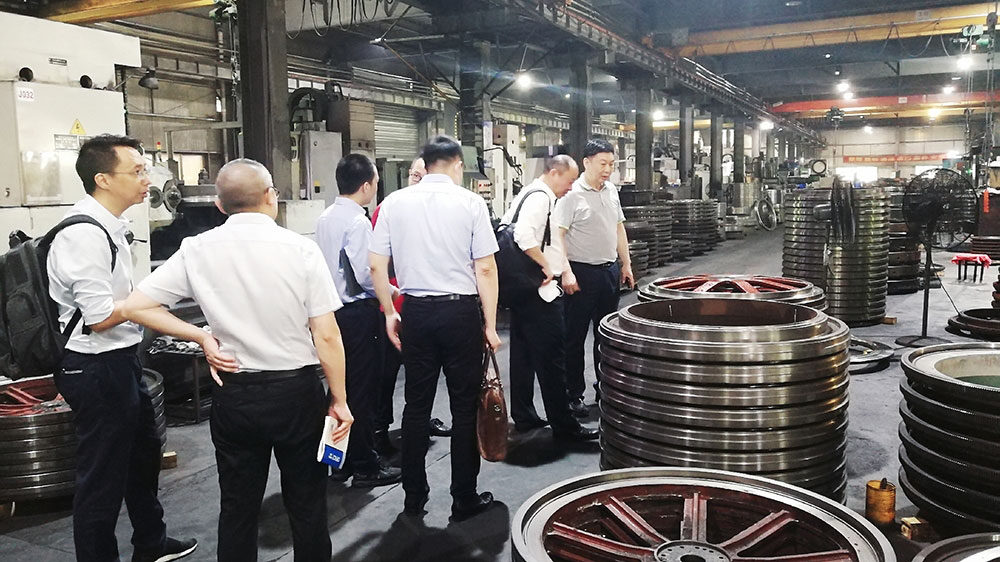 會(huì)后,在董事長(zhǎng)傅開實(shí)陪同下,專家組一行人走進(jìn)車間,深入了解公司的生產(chǎn)情況以及針織大圓機(jī)的制作工藝。
